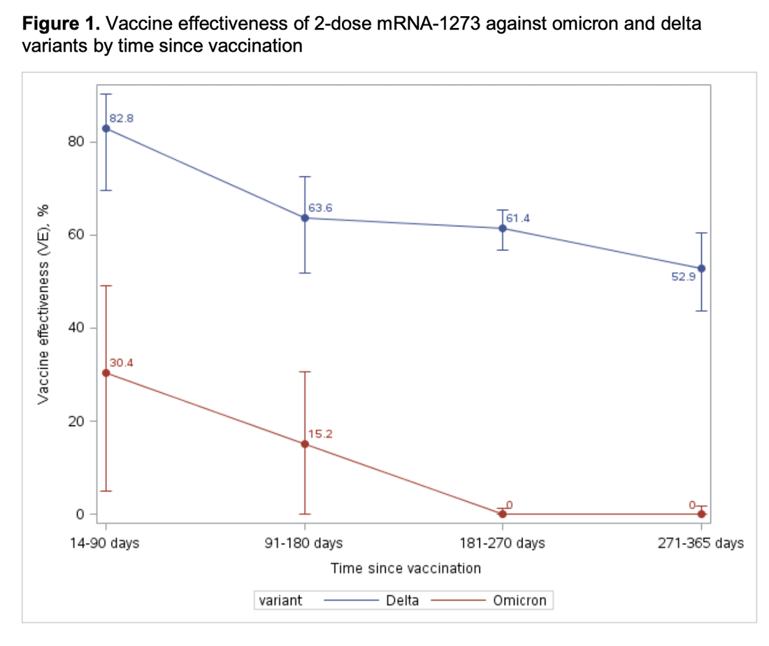 First, Kaiser Southern California. Here are data for 2 doses of mRNA for effectiveness against Omicron. Follow the red line. Over time, it is 0%.