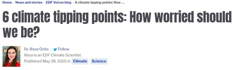 We got as far as 2014 in the previous article and in 2015 the Environmental Defense Fund told us about six climate tipping points that scientists were worried about.