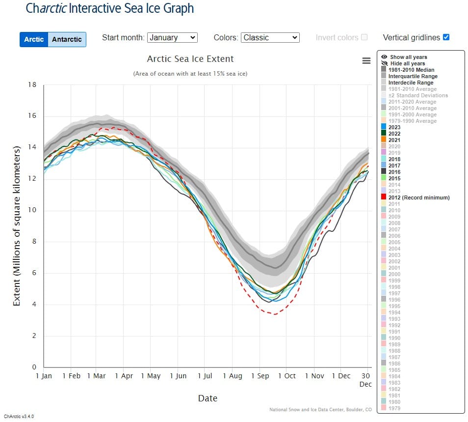 2012 was the record lowest Arctic sea ice and no year since 2015 has beaten the 2012 record low. So much for passing this tipping point.