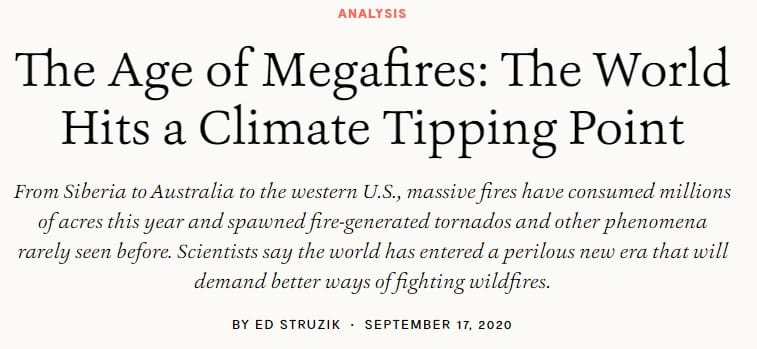 Forest fires were the next big thing to hit the headlines and in 2020 Yale declared we had hit a tipping point.