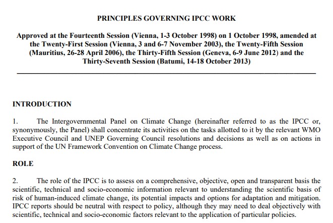 So let’s check on the principles governing the IPCC shall we?
