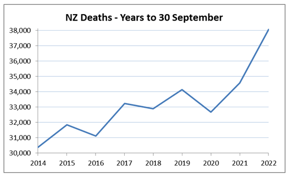 A six per cent increase in deaths one year followed by a 10 per cent the next year is unprecedented. Yet I couldn’t recall this story making the news.