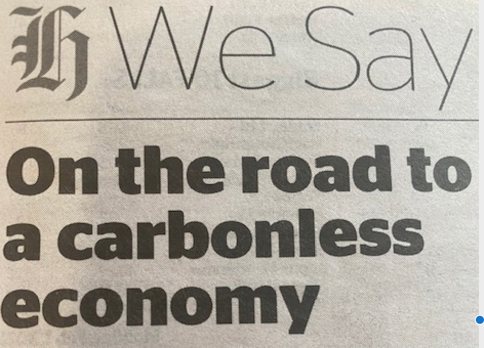 Surely the most junior cadet in the newsroom, let alone the senior journo charged with composing the paper’s editorial, should know that a “carbonless economy” is a “nil economy”, because there would be no life on Earth to create or sustain an economy or anything else.