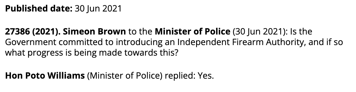 “Even as recently as July, I received assurances from the Minister of Police in response to written questions that the Government was committed to an Independent Firearms Authority. The Police Minister must explain why she has backed down on this promise.