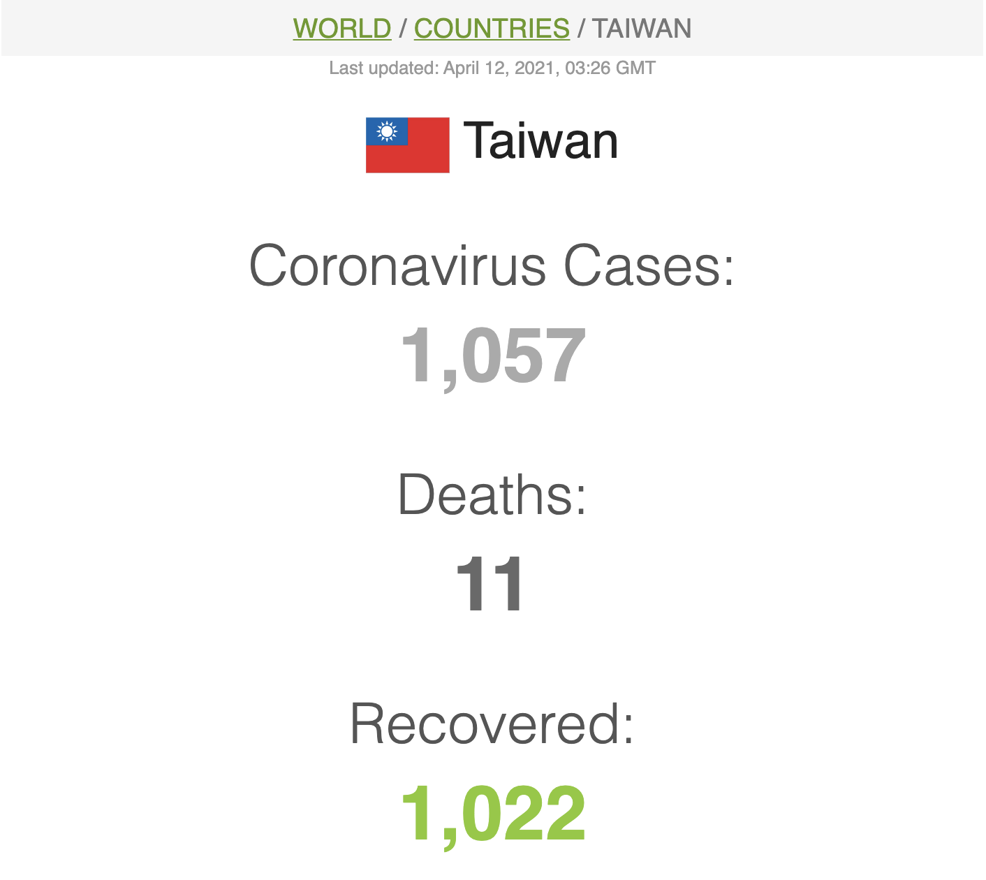 Credit:https://www.worldometers.info/coronavirus/country/taiwan/