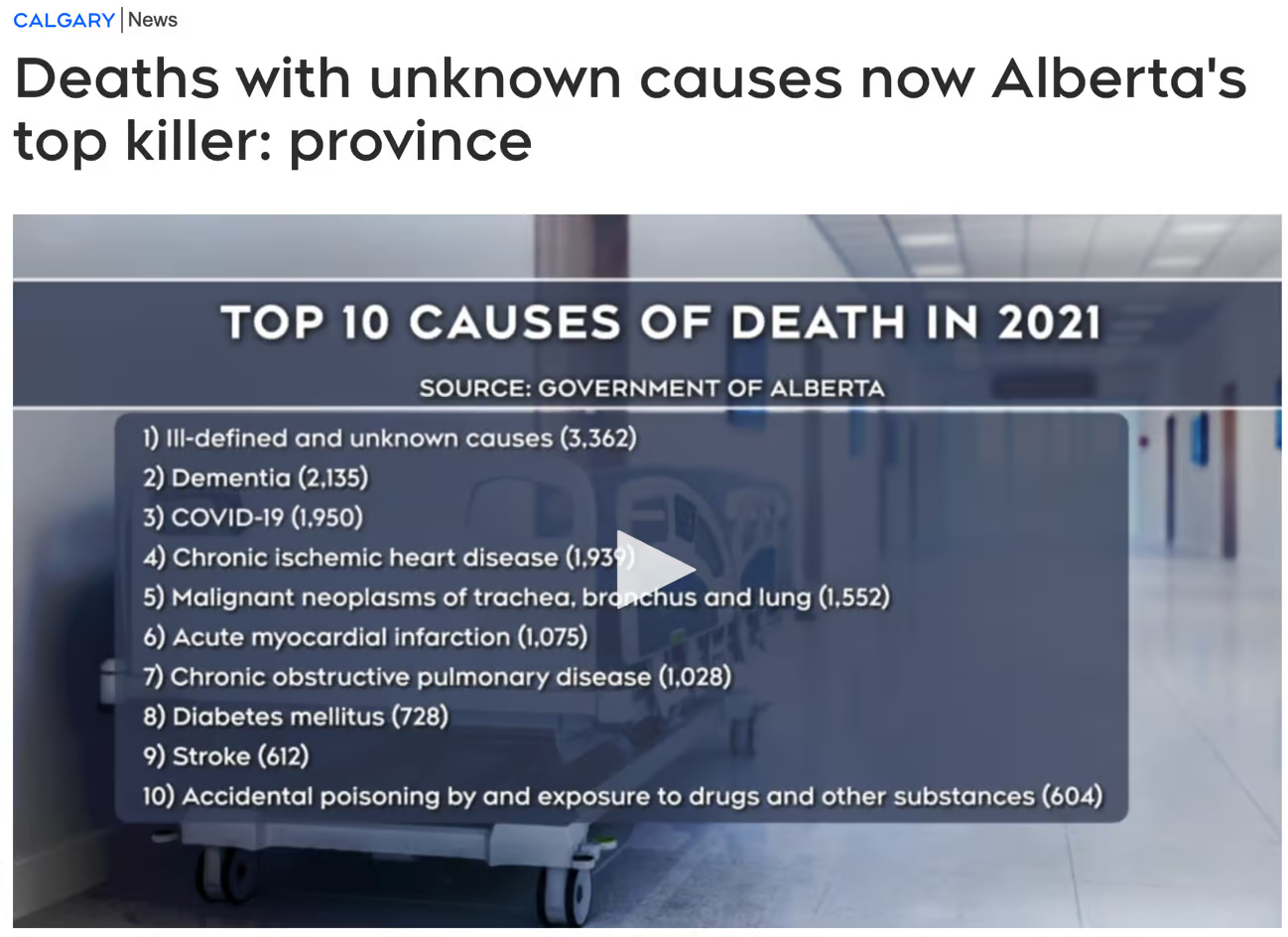 People give more credence to their “lived experience” and by now most know, or know of, many persons who have been infected, some seriously, despite multiple jabs. Visuals of fit and young athletes collapsing suddenly don’t help either, especially when it’s got to the point of being openly mocked by popular TV host Mark Steyn discussing “Cause Unknown” as Alberta’s leading cause of death, and sites like the satirical Babylon Bee: