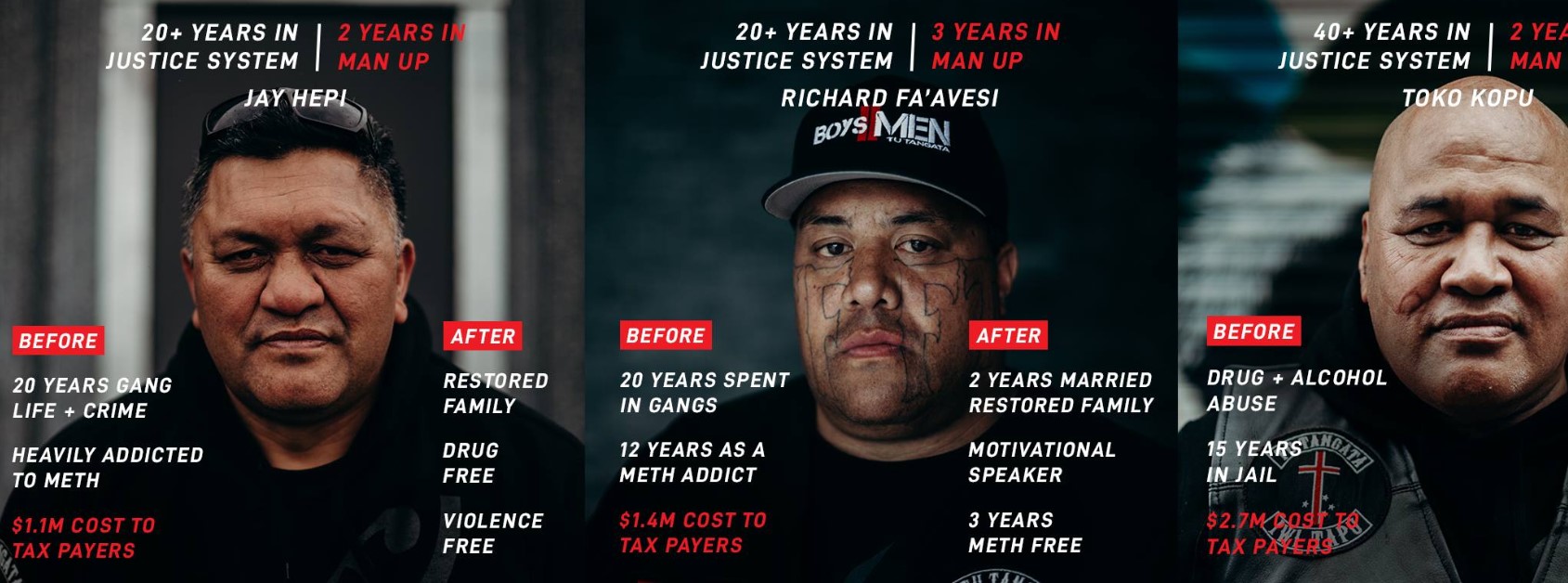 On March 19th, 2019 I was released from prison and deported back to NZ. The very next day I attended my 1st Man Up session and haven’t looked back since. I have been able to identify my dysfunctions and deal with the root of my hurt and anger. I know for a fact that without Man Up I would be falling back in to my old ways but Man Up keeps me honest and accountable for my actions.