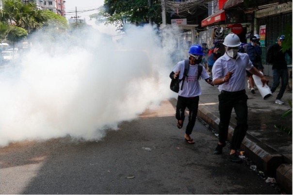 Police have staged violent and unprovoked crackdowns on peaceful demonstrations across the country, firing tear gas and stun grenades to disperse protesters in Yangon, Monywa, Mandalay and other towns and cities.