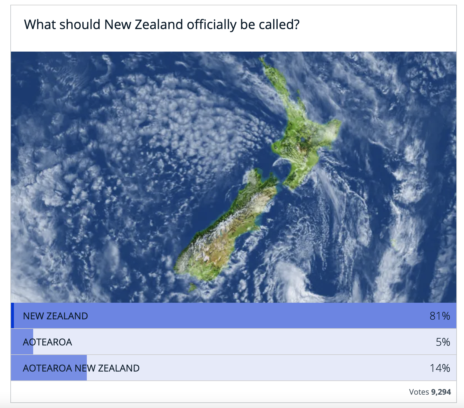 It’s a conspiratorial theory led by her MP Stuart Smith. He says despite there not being a public poll on the name ‘New Zealand’, there should be one on ‘Aotearoa’.
