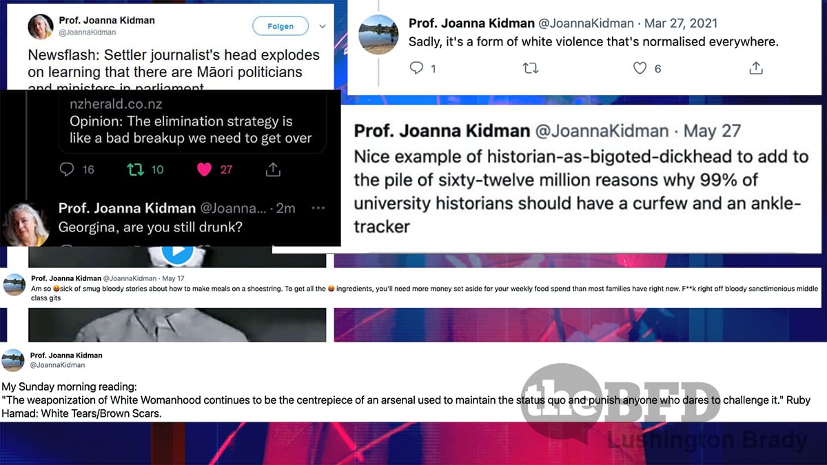Kidman has attacked journalists whose articles she disagrees with, once describing a Wellington reporter as “still drunk”. Kidman often uses the derisive term “settler”.