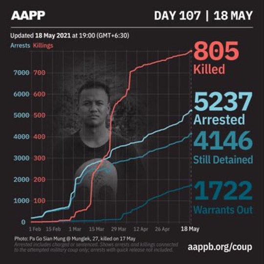 News just in. A small bomb was exploded near a petrol station located at Ocean Shopping Center this evening in Tamwe, Yangon. The Ocean centre is a popular shopping mall complete with supermarket and restaurants and holds personal memories for me as it is close to where I stayed in Yangon. That really brings it home. Fortunately, it did little damage, but it is symbolic of resistance increasing.