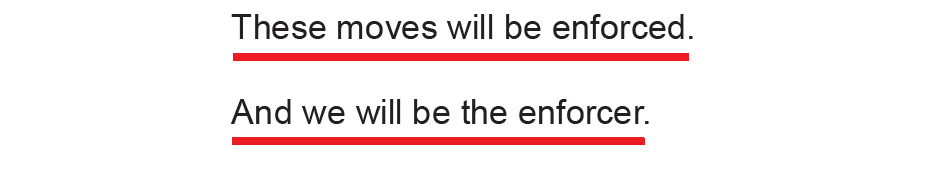 Those enforcement powers, she reminded us, extending not just to the civil agencies but also to include the military if necessary.