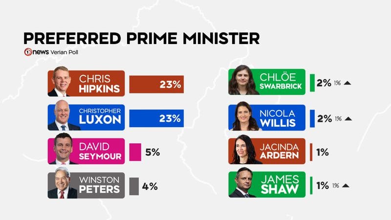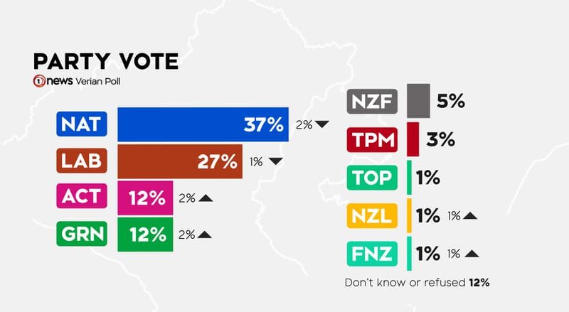 The difference appears to have been picked up by the minor parties, with ACT and the Greens both on 12%, up 2% each. New Zealand First and Te Pati Maori are steady on 5% and 3% respectively.