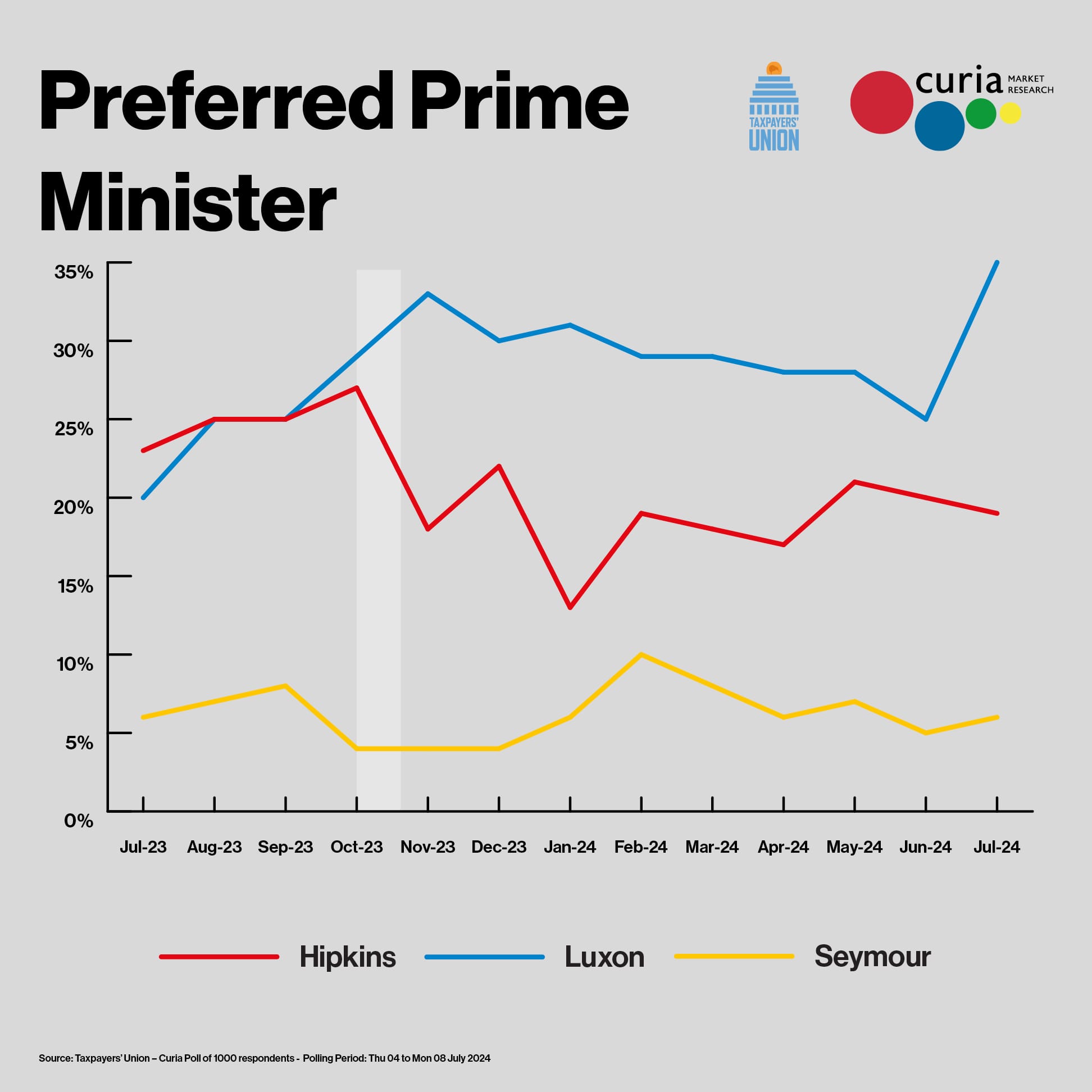 The latest Taxpayers’ Union/Curia poll shows a slump in support for Labour Party and a rise in support for the Coalition Government. It also appears that Christopher Luxon has substantially improved his preferred PM poll ratings.