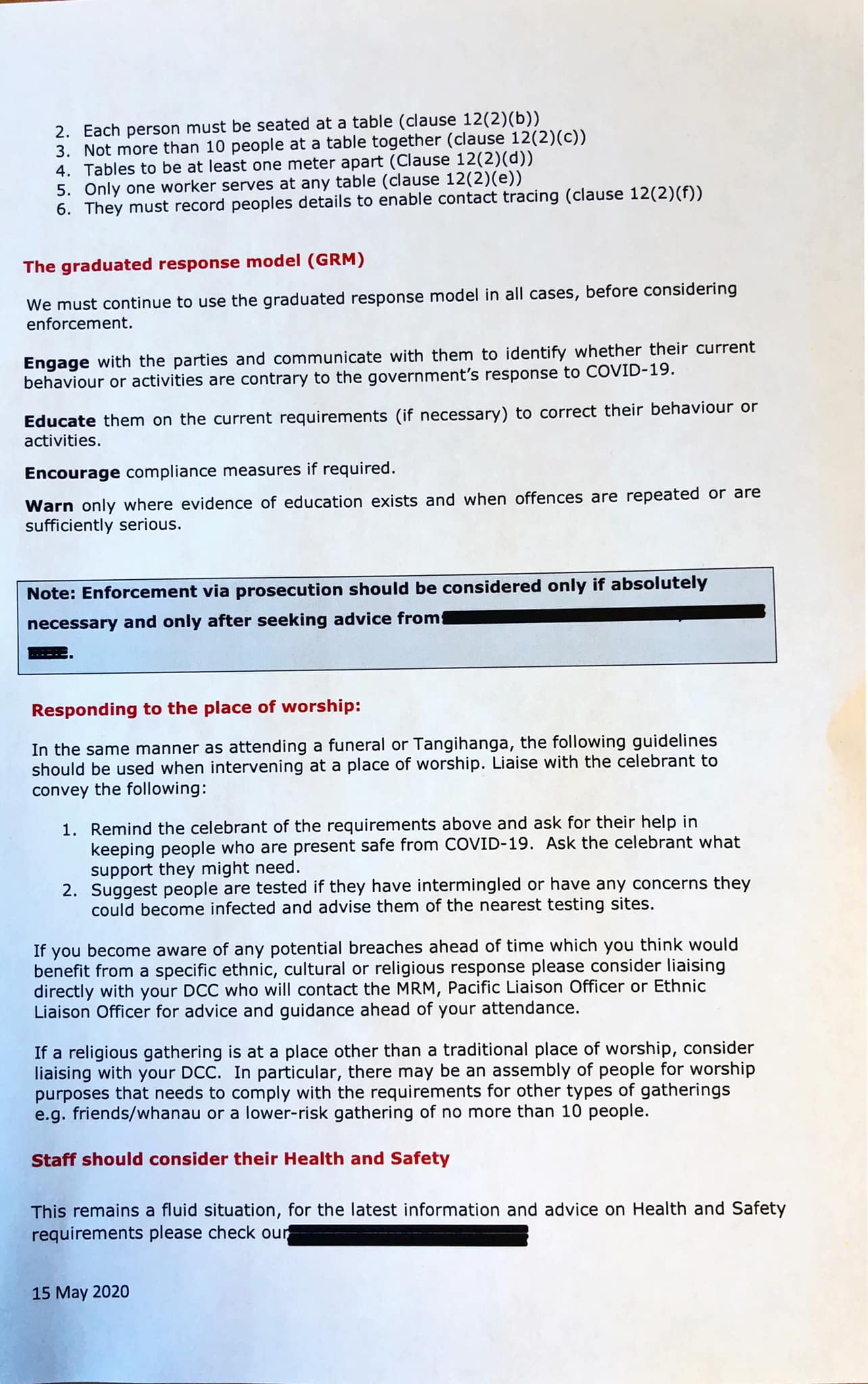 Simeon Brown announced the other day that Police couldn’t enforce any action on places of worship exceeding 10 or more attendees. The Prime Minister rather stupidly retorted that she believed Crown Law over a post on social media.
