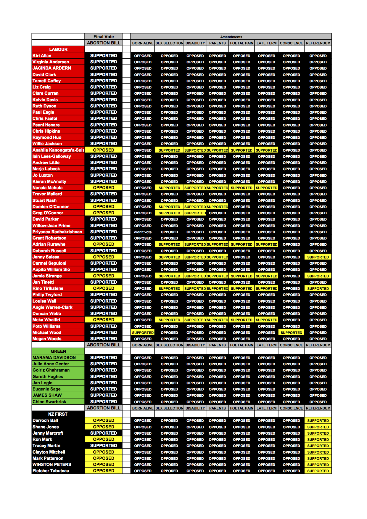 Below is a record of how the MPs voted on the key votes during the abortion debate – including the final vote. As you will see, most pro-abortion MPs voted against all and any attempts to have provisions included in the law relating to foetal pain, born alive abortions, parental notification and late term abortions, amongst others.