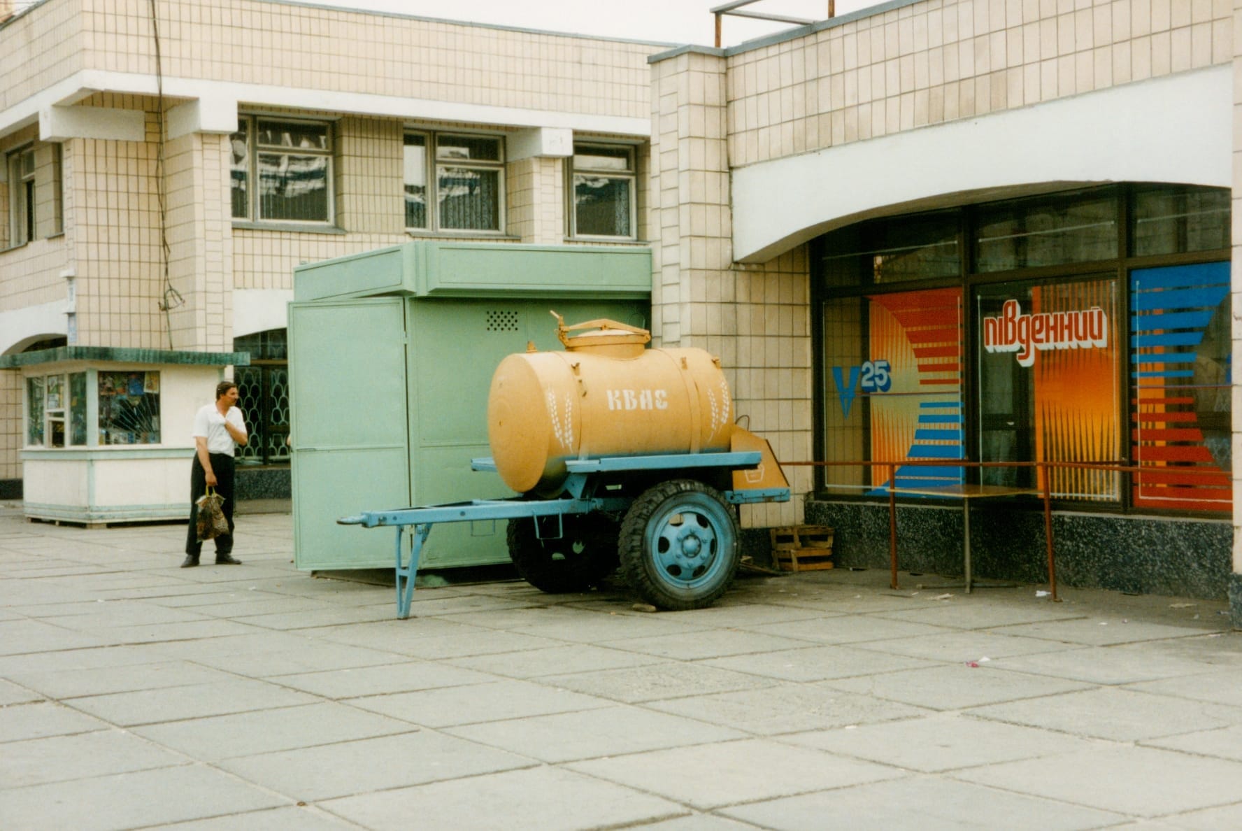 I enjoyed quenching my thirst with kvass, which was delivered to the neighbourhood in a trailer and was used to fill up the purchaser’s own containers. Kvass is a sweet-sour low-alcohol drink made from a mash obtained from rye bread or rye flour and malt soaked in hot water and fermented for about 12 hours with the help of sugar and bread yeast or baker’s yeast at room temperature. In industrial methods, kvass is produced from wort concentrate combined with various grain mixtures. It is actually quite refreshing.
