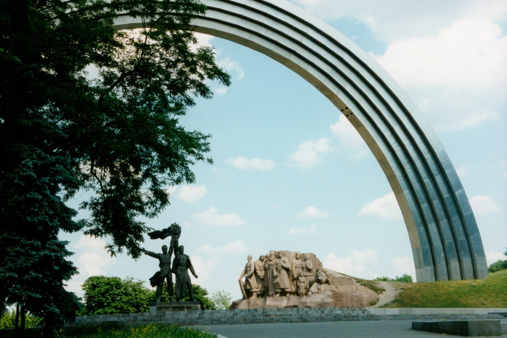 The Arch of Freedom is a monument in Kyiv. It was opened on 7 November 1982 to commemorate the 60th anniversary of the USSR and the celebration of the 1,500th anniversary of Kyiv. The presence of this arch under shelling by Russian troops is the height of irony.