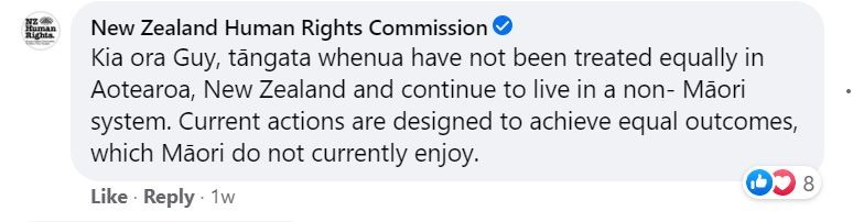 Below is the FB post for reference – obviously racism of any kind is abhorrent, but there is some terrifying irony for all New Zealand citizens in the position taken above by a government agency pertaining to be a bastion against racism. While I believe there is no legislated systemic racism currently in New Zealand it appears that this hard-fought proclivity towards equality in one of the world’s greatest democracies maybe soon eroded.