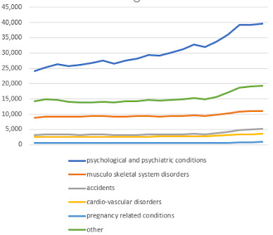 There are also over 32,000 adults on a Supported Living Payment (ex Invalid benefit) suffering from pyschological or psychiatric disorders. That’s up around 4,000 over the same period.