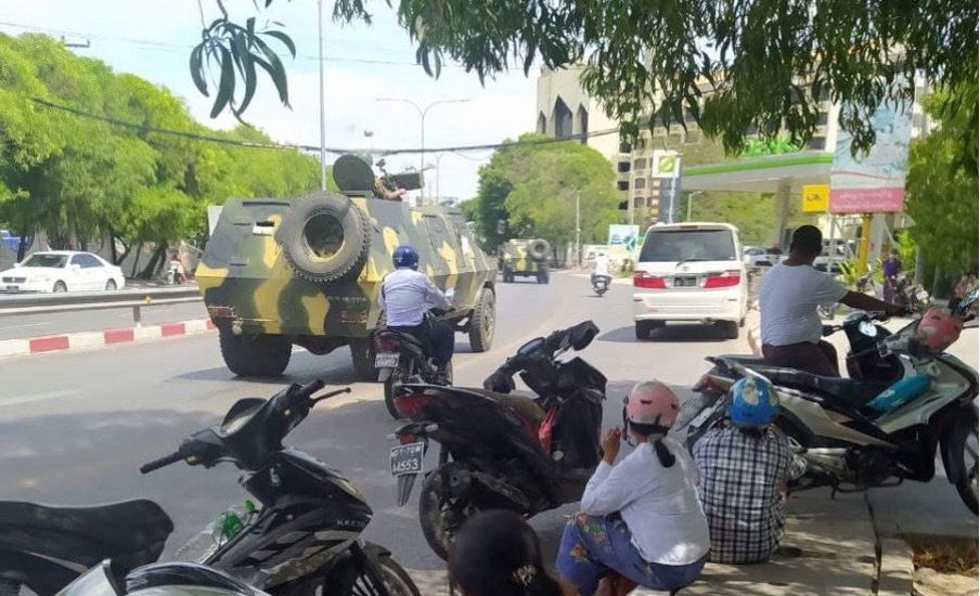 “Junta troops arrived around 7 a.m. and opened fire at 111st and 54th streets. It was not heavy shooting. Then there was an exchange of fire between 8 a.m. and 8.30 a.m. So far, junta troops have not yet raided houses. But they are detaining every man on sight,” a resident of Hton Tone Ward said in the morning while the clash was still going on.