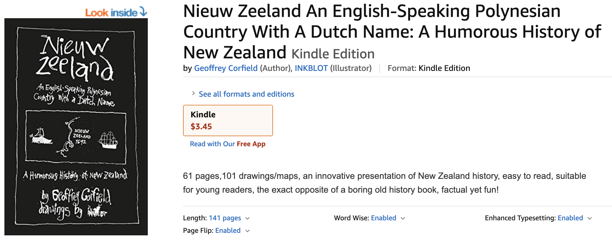 You can purchase Nieuw Zeeland An English-Speaking Polynesian Country With A Dutch Name: A Humorous History of New Zealand by Geoffrey Corfield from Amazon today.