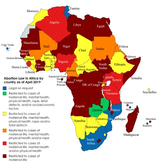 Abortion Law in Africa by country as of April 2019. (Source: reddit.com)