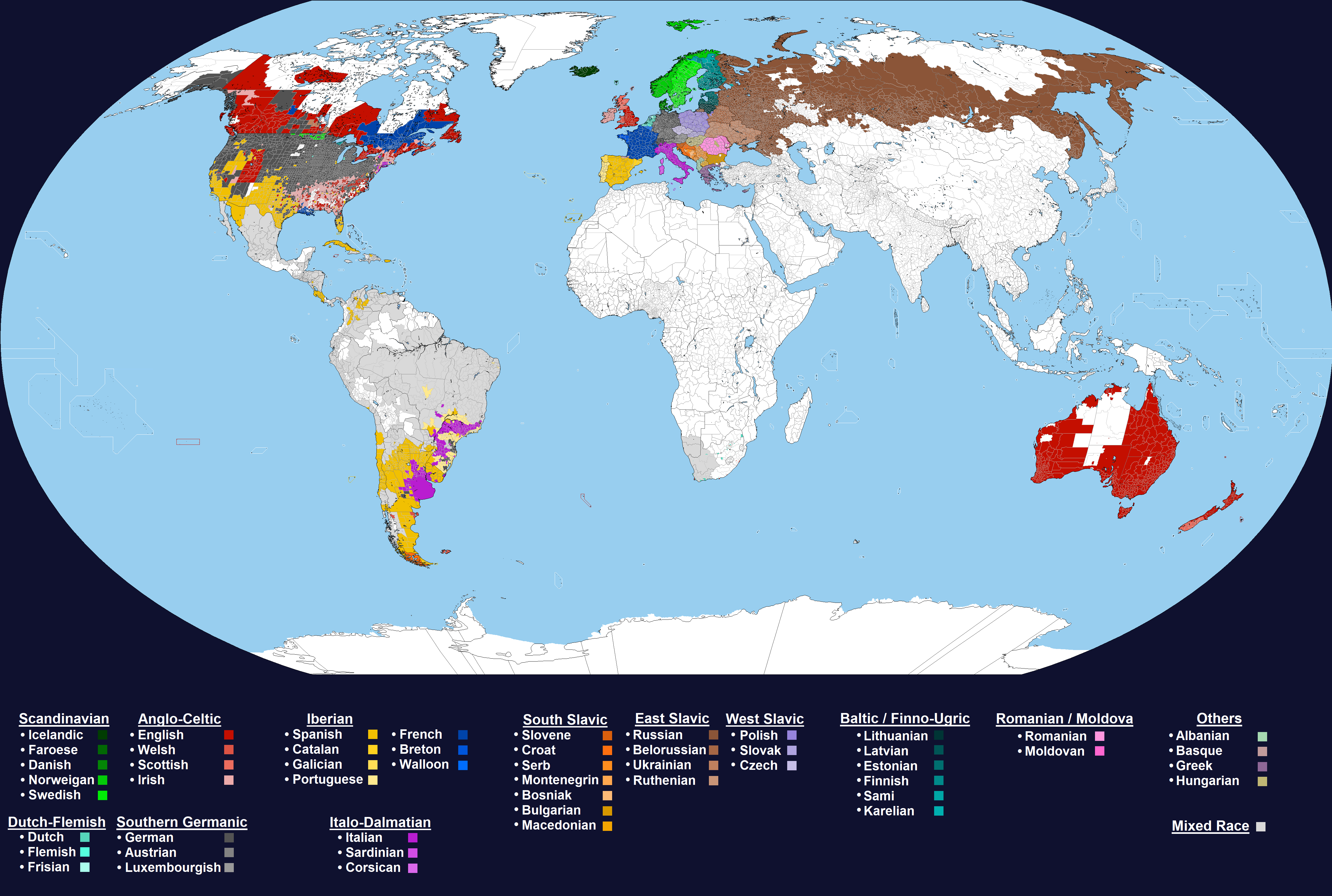 European ethnicities around the world (based on self-identification).