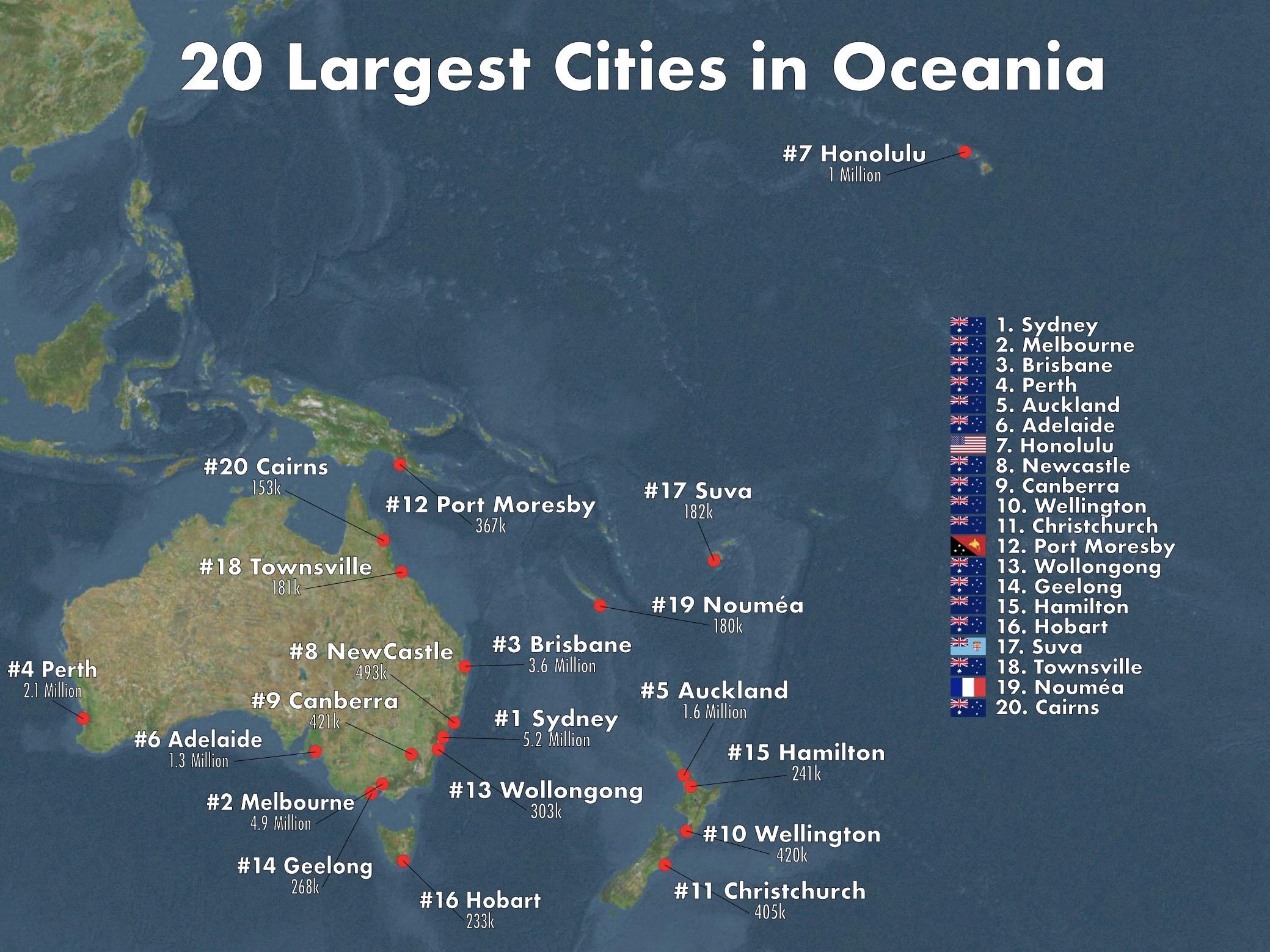Map of the Day: The LARGEST Cities in Oceania by Population