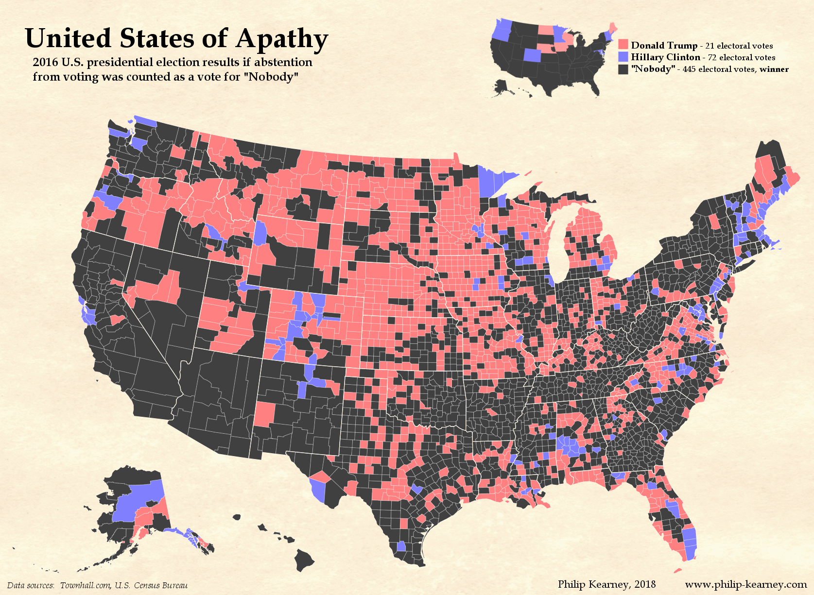 The United States of Apathy – 2016 US Presidential Election Results If Abstention From Voting Counted As a Vote For “Nobody”