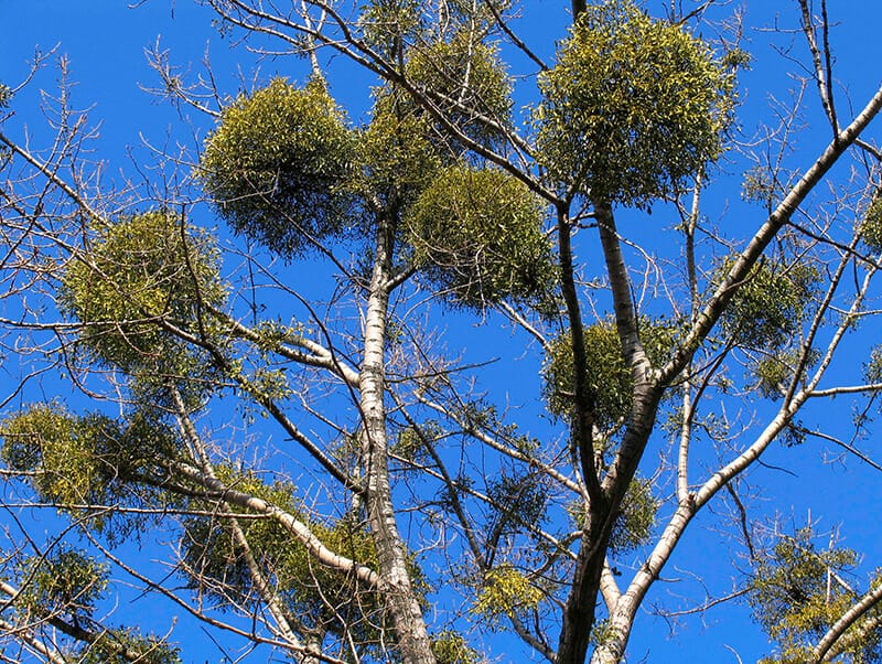 And while a handful of species inflict damage on horticulturally important trees, including members of the pine family that are valued for their timber, most mistletoes don’t infect economically important crops, Watson says.