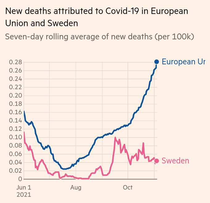 A comparison between case rates in Sweden (which never legally imposed face masks) and the rest of Europe is also very revealing.