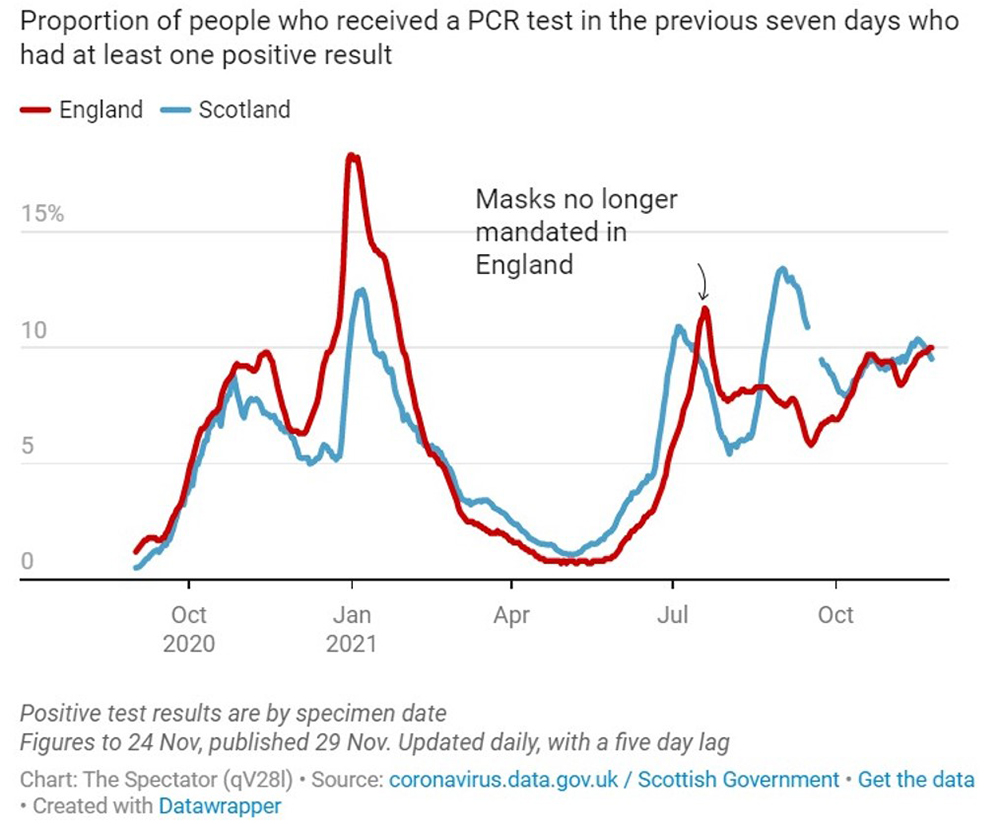 As the graph above illustrates, despite England dropping mask mandates and Scotland keeping them in place after July, infection rates were similar or indeed higher in Scotland […]