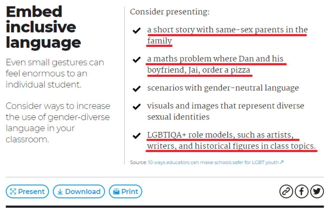 The Ministry of Education website is now littered with links and videos directing teachers to Minus-18 and The Safe schools coalition.