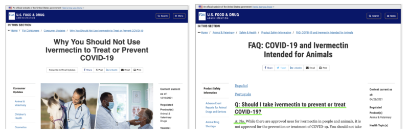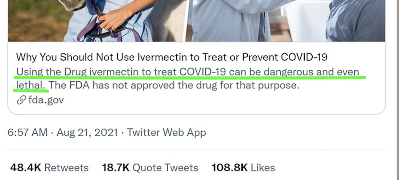 Both then and now, those FDA webpages, postings, and tweets were not just biased. They were irresponsible in their denigrating ivermectin as an off-label treatment, which is why they are now gone.