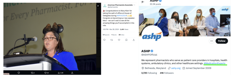 Over a month later, and as of this publication date, none of these organizations have a single thing to say about their previous press releases quoting the now-removed FDA articles and tweets. In fact, here is an indication of their concerns: one week after the FDA acquiesced to remove its postings in ivermectin, APhA’s newly elected speaker chair and pharmacist Mary Klein is “happy danc[ing]” and giving her official acceptance speech wearing Mickey Mouse ears. ASHP’s (A/K/A “#MedicationExperts”) still shows its official page with clinicians wearing ineffective, unnecessary surgical masks despite the pandemic having ended well over a year ago and Cochrane reviews indicating that this sort of masking is almost certainly ineffective. AMA officials are making multiple posts on transgender issues and declaring climate change a public health crisis, – all while fully ignoring its impactful, incorrect, inappropriate statements on ivermectin.
