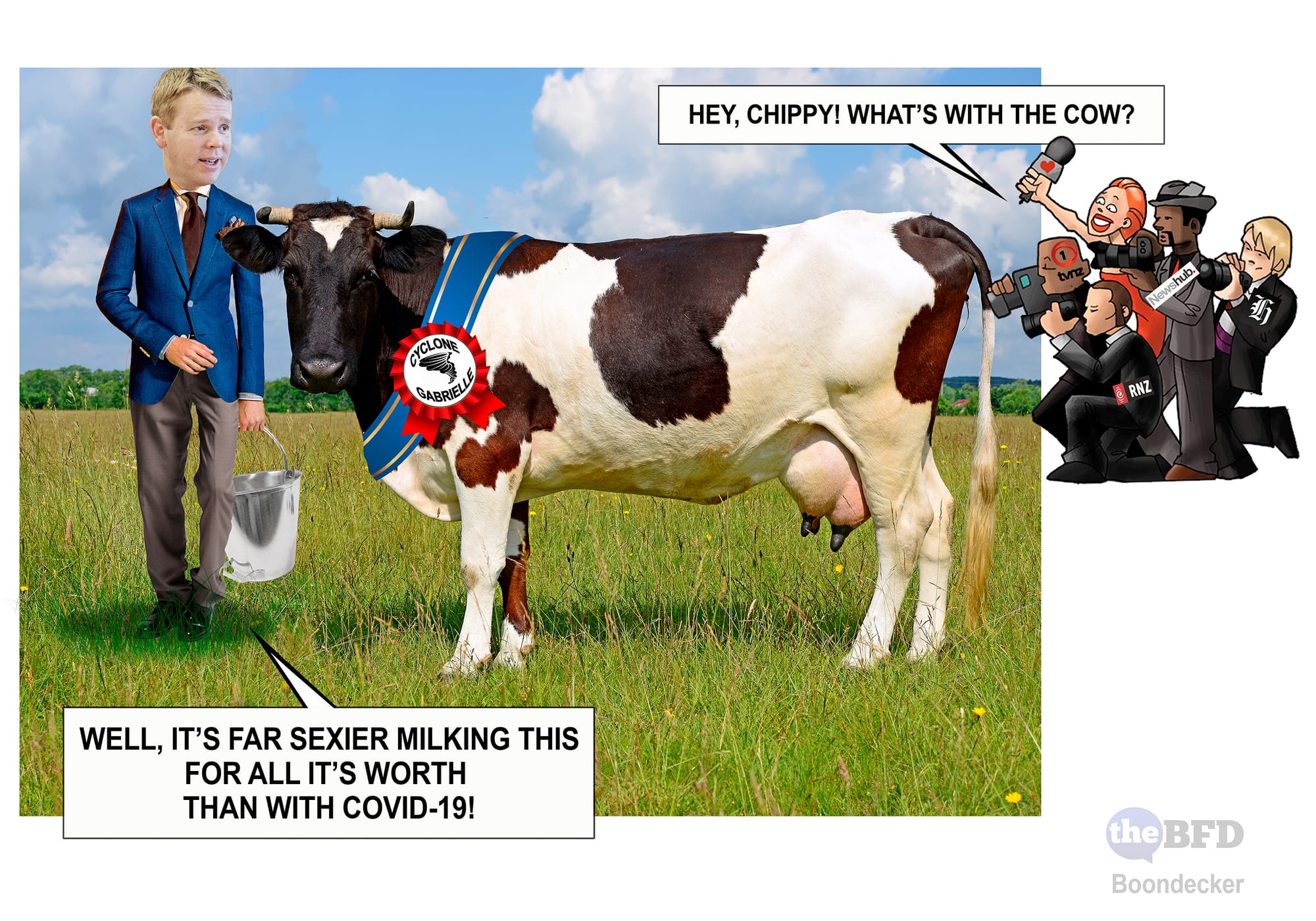 Milking it. Photoshopped image credit: Boondecker. The BFD.