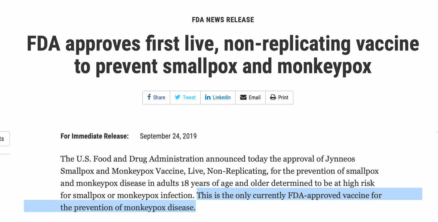 The US likely has first dibs on the product because the vaccine was developed with American support. Anthony Fauci’s NIAID has supported Bavarian Nordic with well over $100 million in grants. Whether Fauci and his colleagues will receive kickbacks and royalties for this vaccine remains unknown.