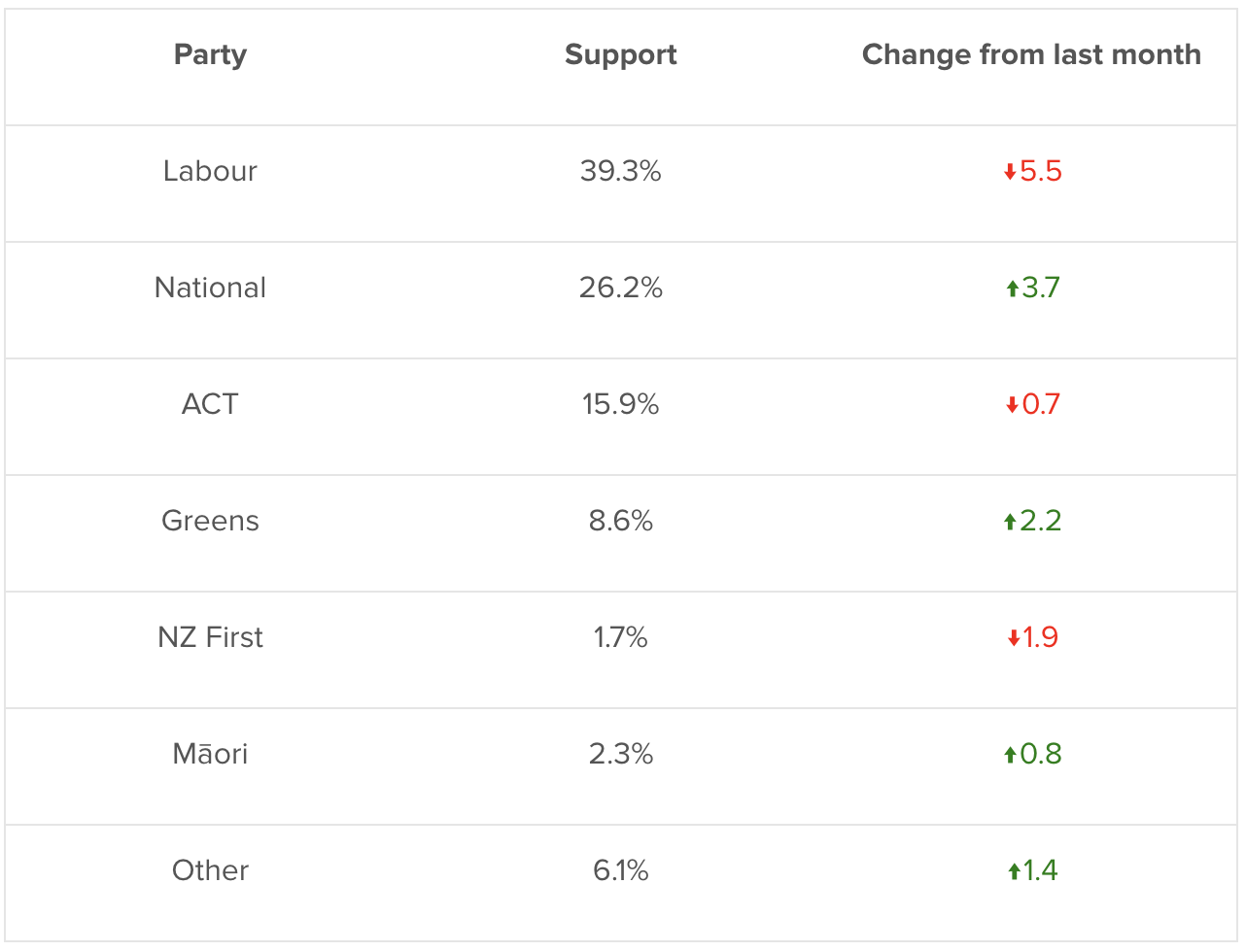 We can reveal the results of the third monthly Taxpayers’ Union Curia Poll that shows a 6 point drop in support for Labour, while National and the Greens are up.