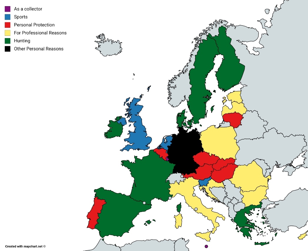 The most common (relative to survey average) reason given for possessing a firearm in the European Union and UK (2013 official EU survey).