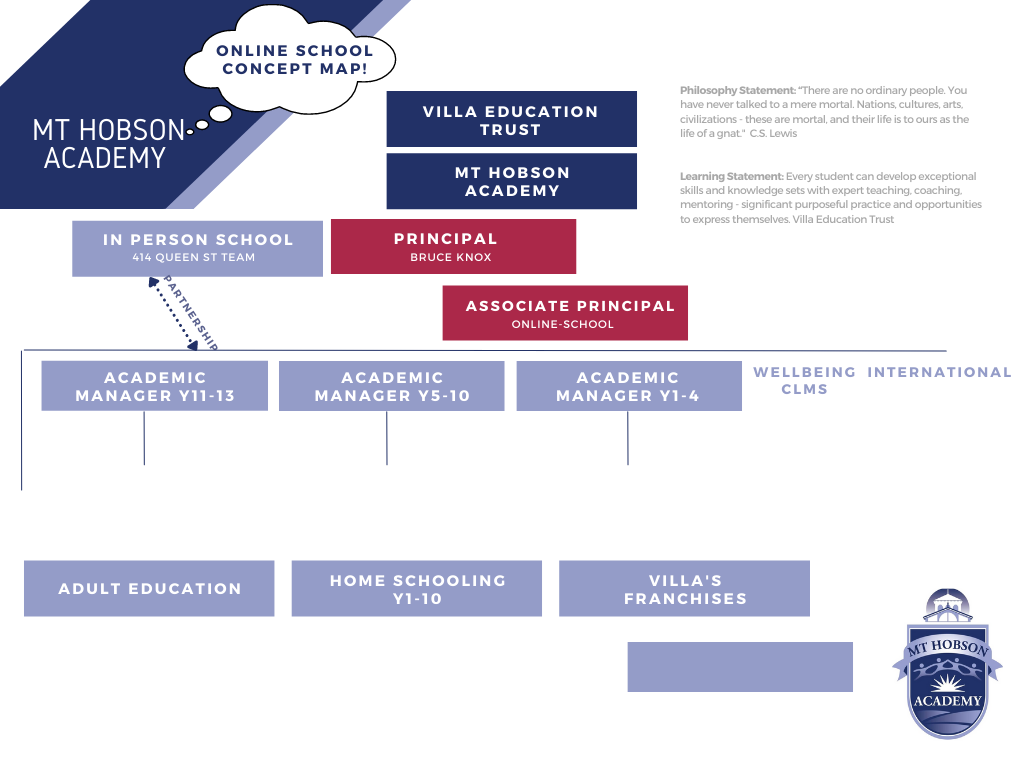 6. Some people have asked what our Villa/Franchise structure means for teachers/students/families. South Auckland Middle School and Middle School West Auckland are schools of 180 & 240 respectively. In practice, they operate in Villas of 60 with massive care for and knowledge of the individual. In some places and/or with some skill sets a teacher may have 25 Connected students under their care. They may also share teaching skills/resources with other Villas. There is no investment or establishment cost associated with this mechanism. It is a great idea for family communities. You do not need to get to 25 in a particular location – it can be shared geographically. The quality of teachers looking at this is outstanding.