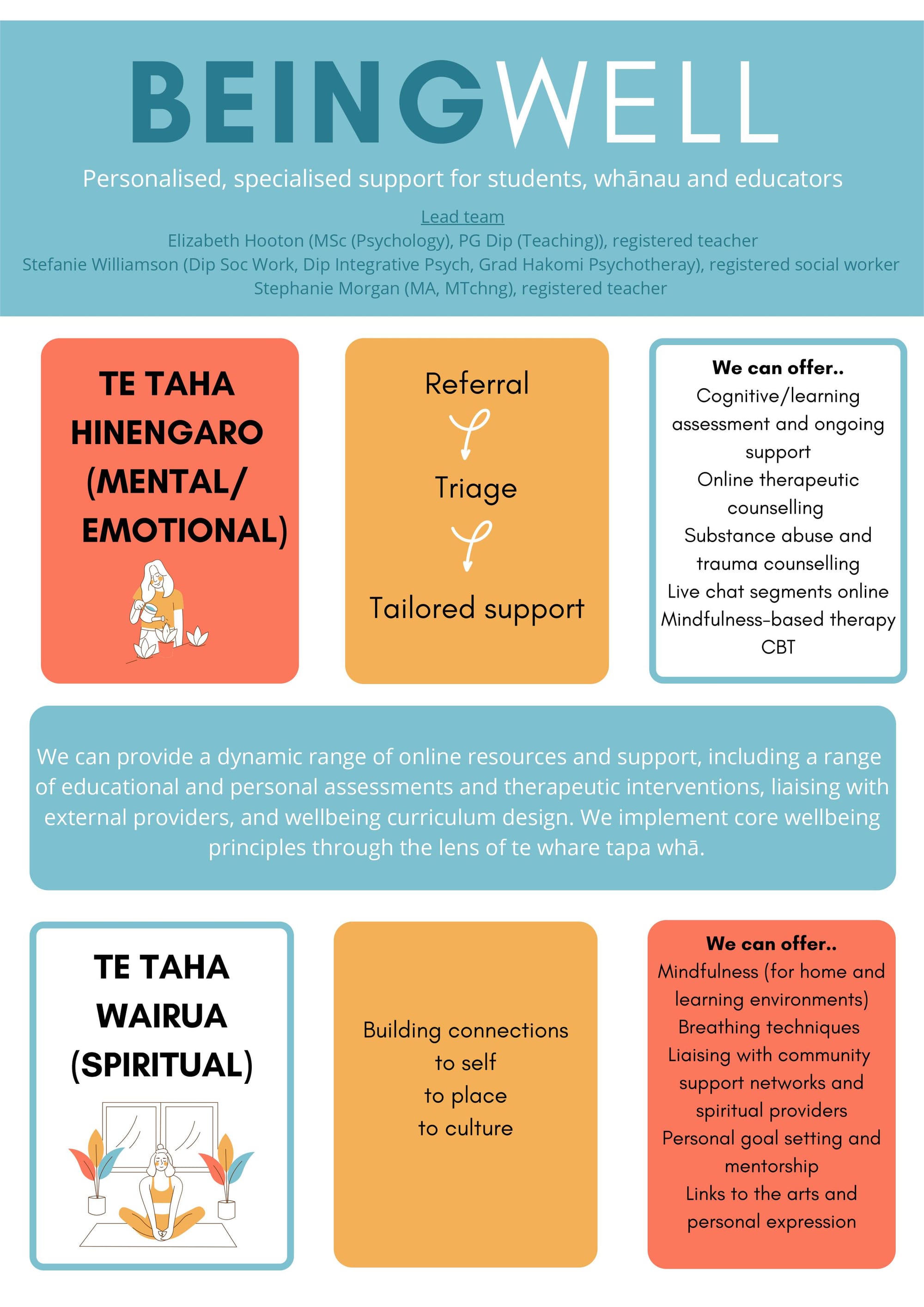7. We have formed a lead team for Well-Being (and can add to it over time). They are amazing. We are working hard on an Arts and Languages team also. The graphic below was sent to every school in NZ yesterday as these teams can contract . If you can help with connectivity please let me know.