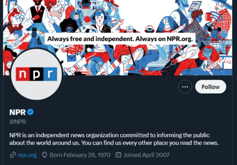 Back there in the Stone Age of 2023, Elon Musk, he of X that is formerly Twitter, antagonized NPR and PBS because – ready? Musk had made some changes to “state-affiliated” media designations, applying the term to both of those outlets. They’re state-funded, but not state-affiliated?