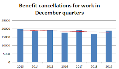 18,818 benefit cancellations for work is not particularly spectacular when compared to the previous December quarters and the trend-line is down.