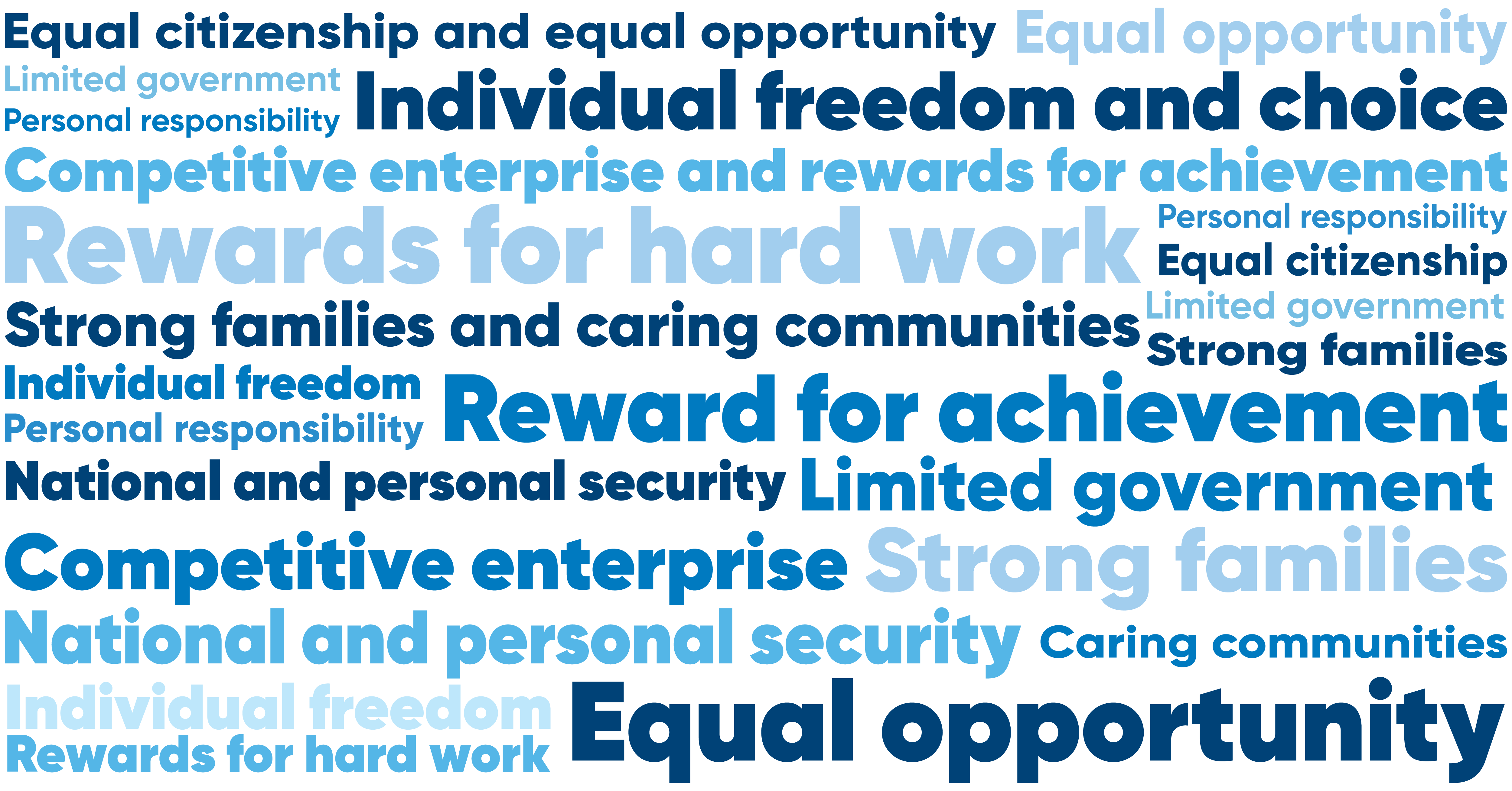 The foundation of our Party is built on the values of ambition and success; with lower taxes, reward for hard work, and equal opportunity for all at its core.