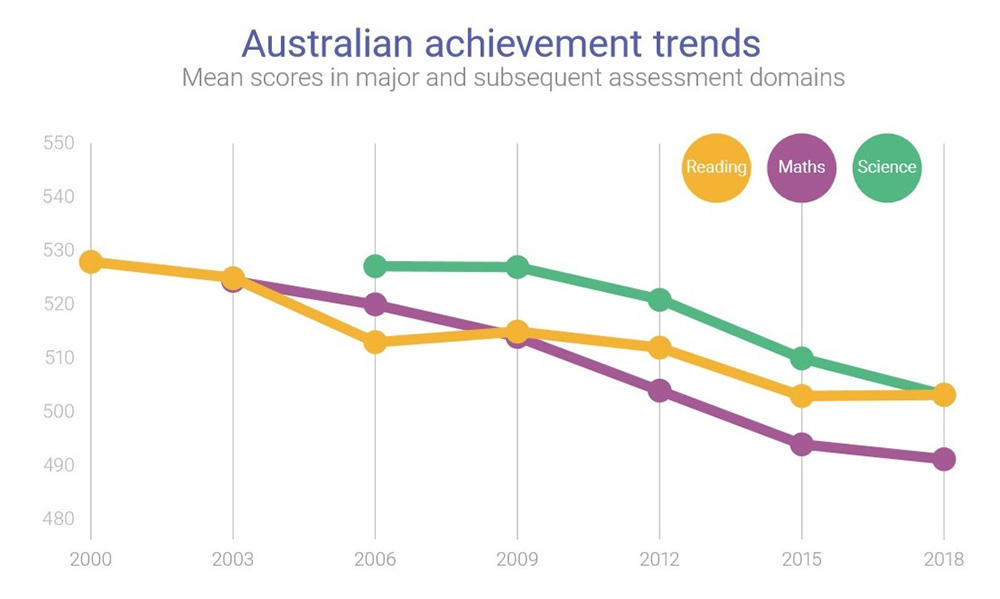 Despite frequent school reforms, educational performance has not been improving. Indeed, it has been in decline compared to many other countries. International data makes that clear. Australian Council for Educational Research concluded it by saying that student performance in Australia has been in long-term decline.