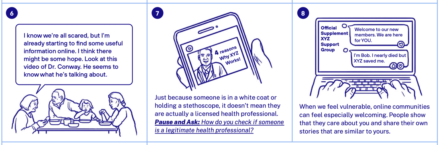 Meanwhile, on the other side of this stands the CDC, NIH, and HHS. The HHS has actually just produced something of a comic book (though probably not intended as such) designed to train people to recognize “misinformation.” It has no specifics and contains no scientific studies or claims. Instead, it is page after page of hint, hint, nudge nudge. In particular, I was struck by the following frames, which seem directed precisely against all those doctors and organizations that worked so hard during the pandemic to help people.