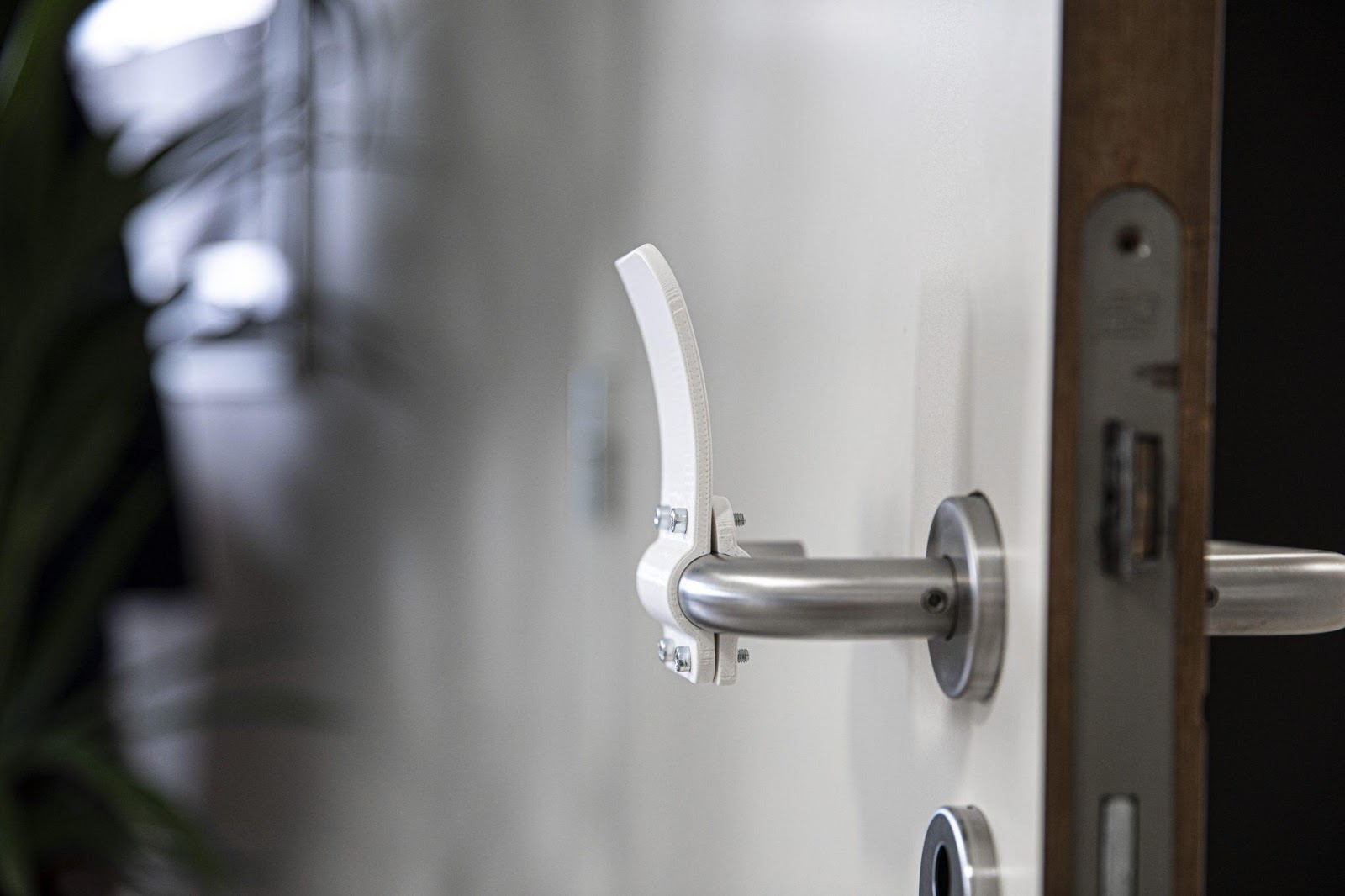The 3D-printed door opener attaches to door handles and extends a paddle-shaped object for people’s arms to open and close doors. It doesn’t need holes to be drilled, and you don’t need to replace the doorknob or handle. This version only attaches to cylindrical handles, though Materialise is going to design more 3D files that fit different types of door handles.