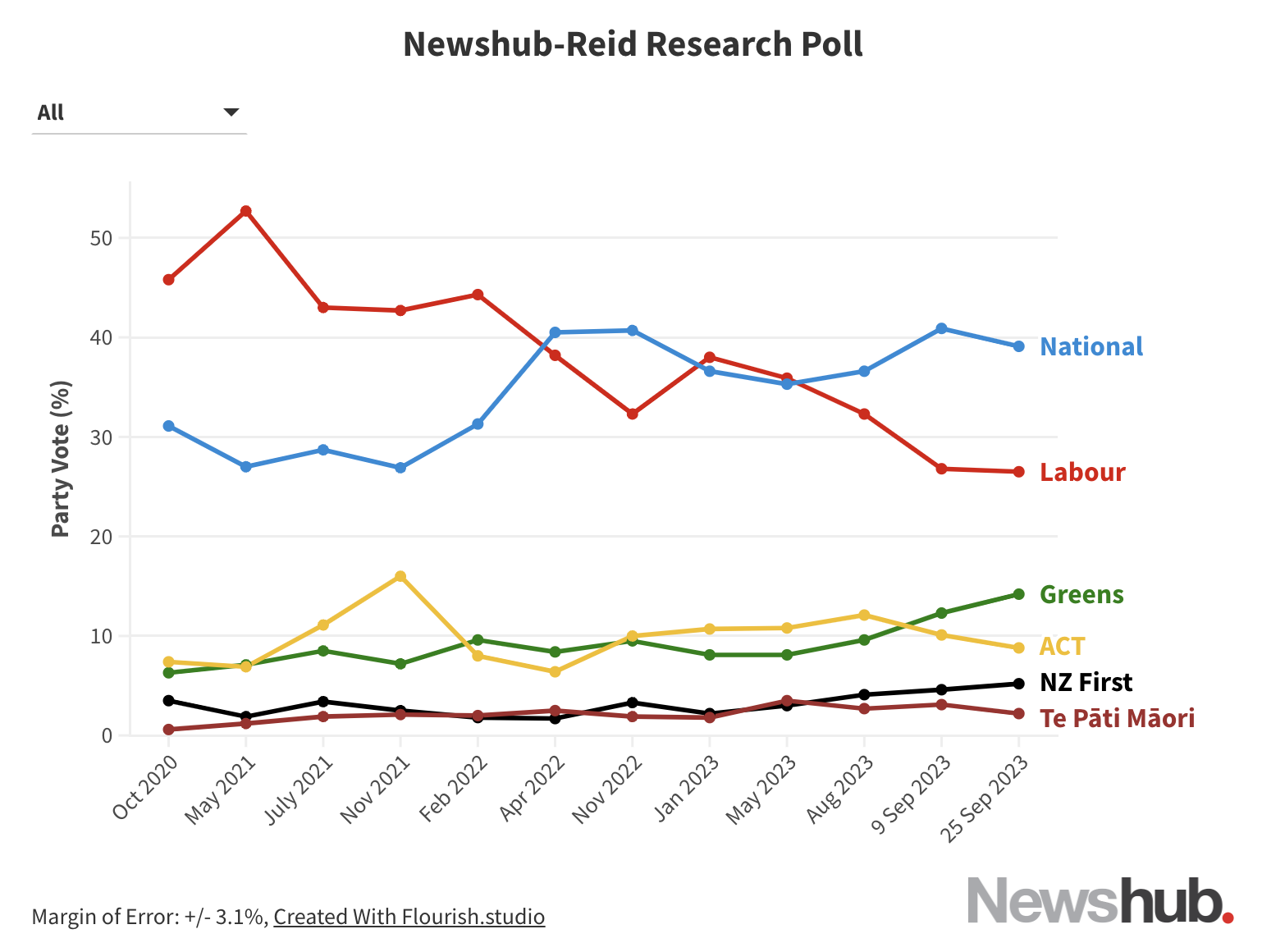 Te Pati Maori’s losing momentum, falling down to 2.2 percent. The Opportunities Party is hot on their tails at 1.9 percent and the New Conservatives are at 1.1 percent.