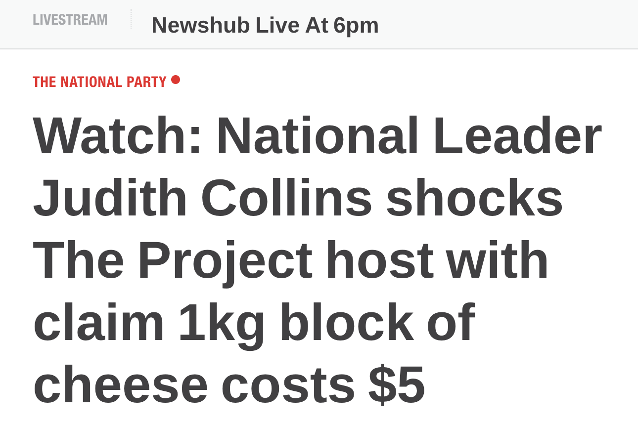 The only thing more ridiculous than the fact that they asked her the price of a block of cheese is that both The Spinoff and Newshub thought that her answer was worthy of a headline and/or an in-depth article.